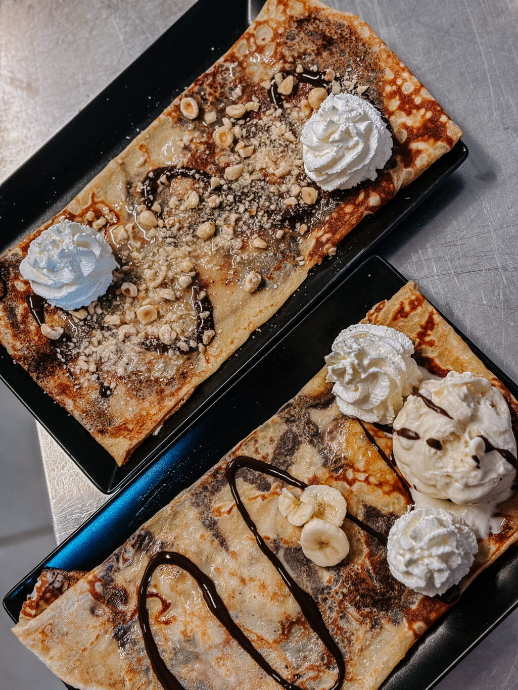Chaque crêpe, qu’elle soit de blé noir ou de froment, est préparée avec soin à partir de produit locaux, pour vous partager le vrai gout de la Bretagne.